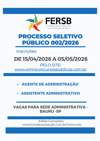 Copyright 2026 - FERSB Fundação Estatal Regional de Saude - Região de Bauru - Todos os direitos. reservados.